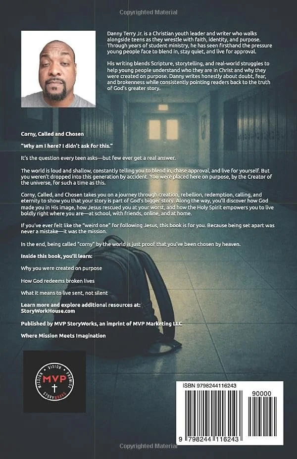 Corny, Called, and Chosen takes you on a journey through Creation, Rebellion, Redemption, Calling, and Eternity to show you that your story is part of God’s bigger story. Along the way, you’ll discover how God made you in His image, how Jesus rescued you at your worst, and how the Holy Spirit empowers you to live boldly right where you are—at school, with friends, online, and at home.